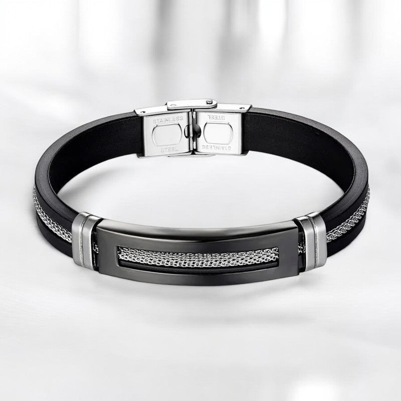 Define your style with this luxurious bracelet that merges sleek stainless steel with the rich texture of leather. Designed for the modern gentleman, this piece offers a perfect balance of durability and sophistication, ensuring you stand out with subtle elegance.
